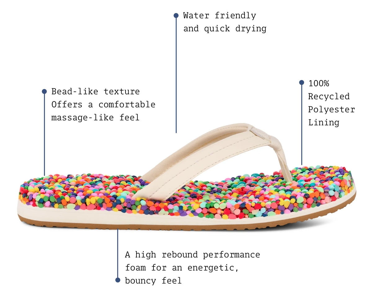 A bold and innovative take on a traditional sandal from the creative geniuses at Sanuk. Bubblecush is not only visually disruptive, but it features a high rebound performance foam for an energetic, bouncy feel. These sandals are water friendly, quick drying, and the foam's texture offers a massage-like sensation with each step, making them as fun to wear as they are to look at. From the beach to the boardwalk, the Sanuk Bubblecush Sandal is designed to turn heads and deliver all-day comfort.