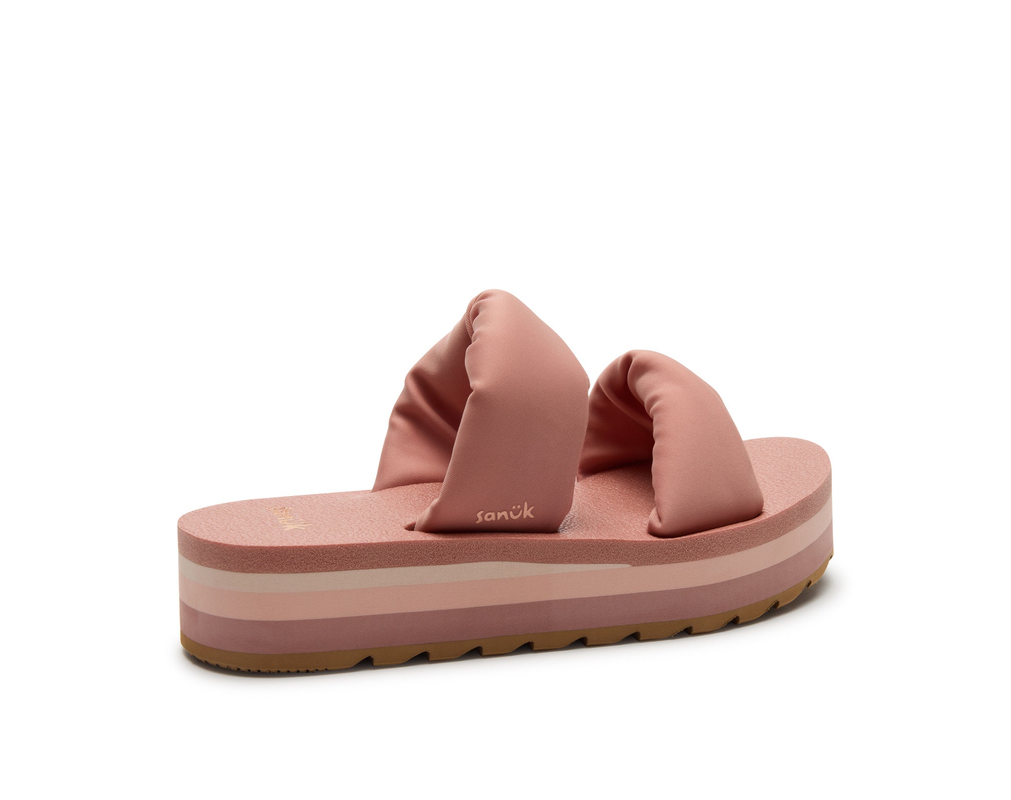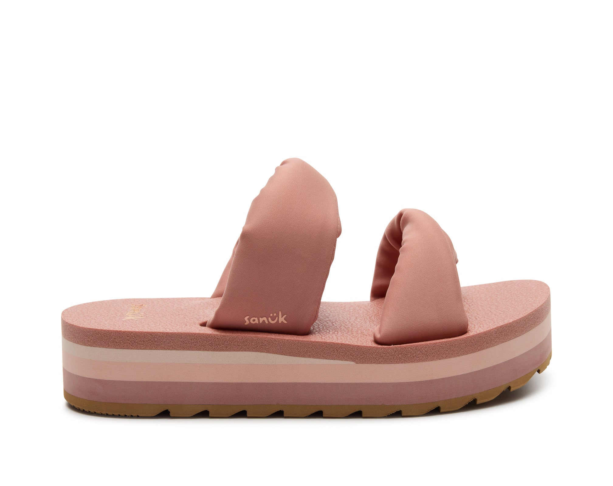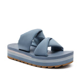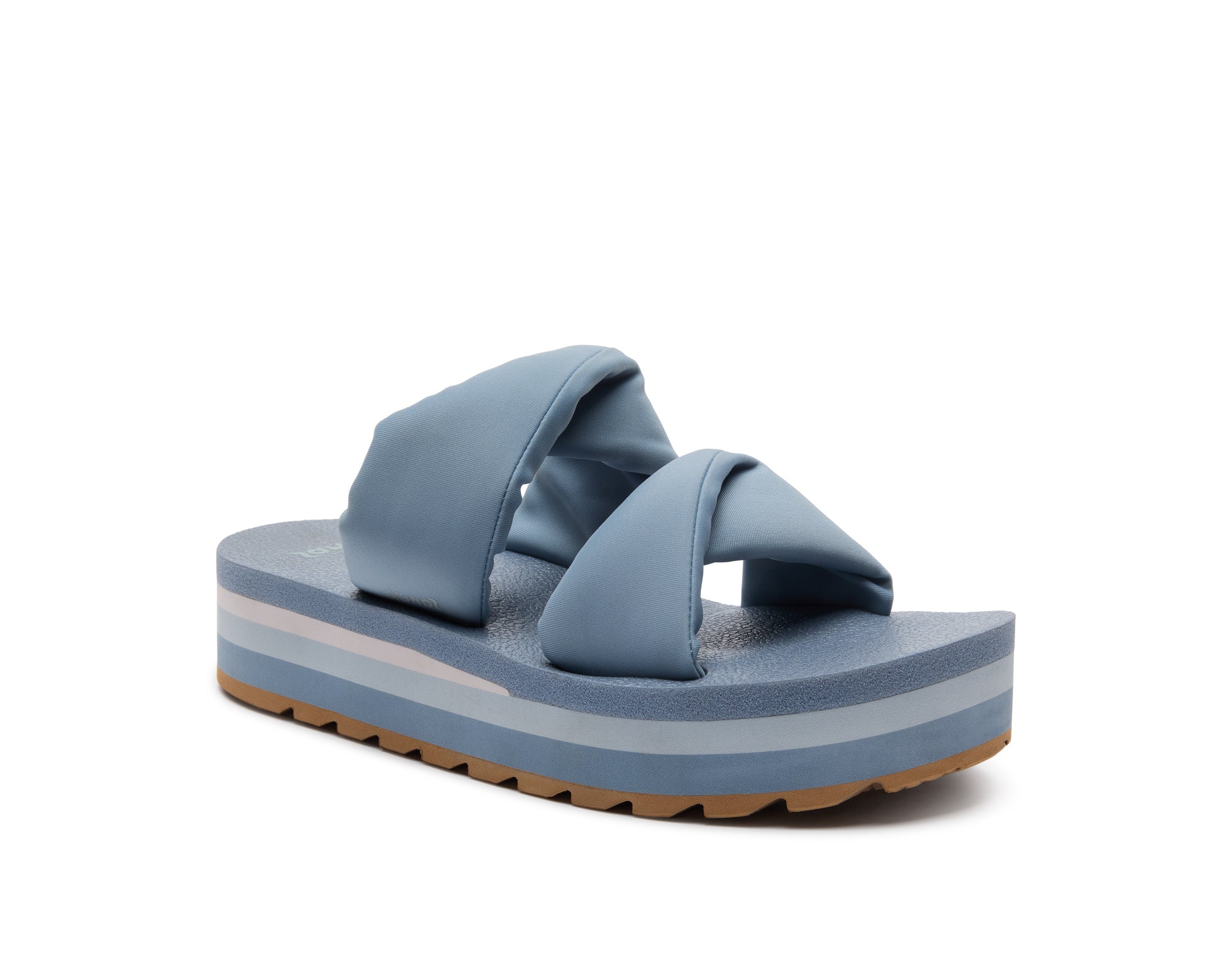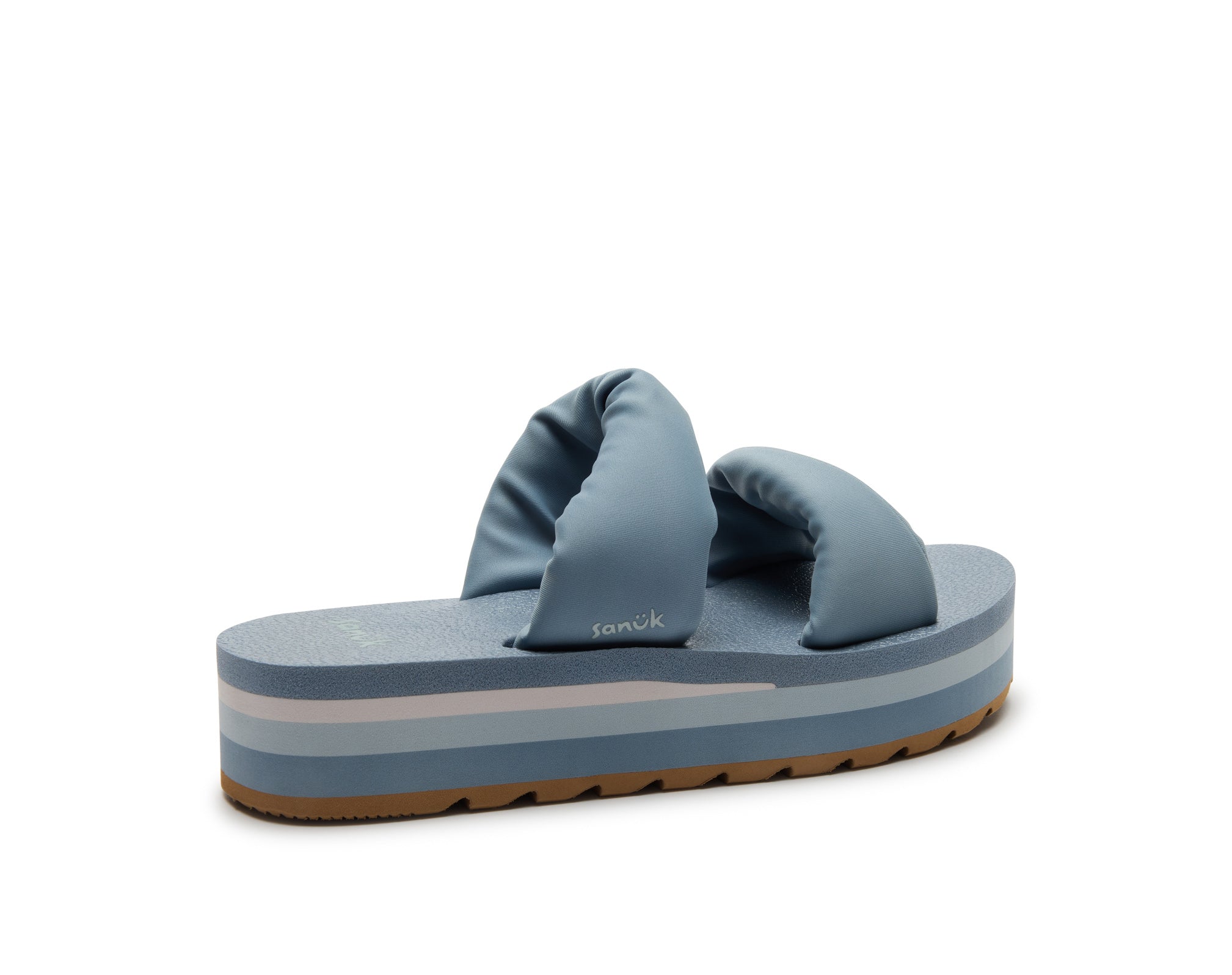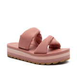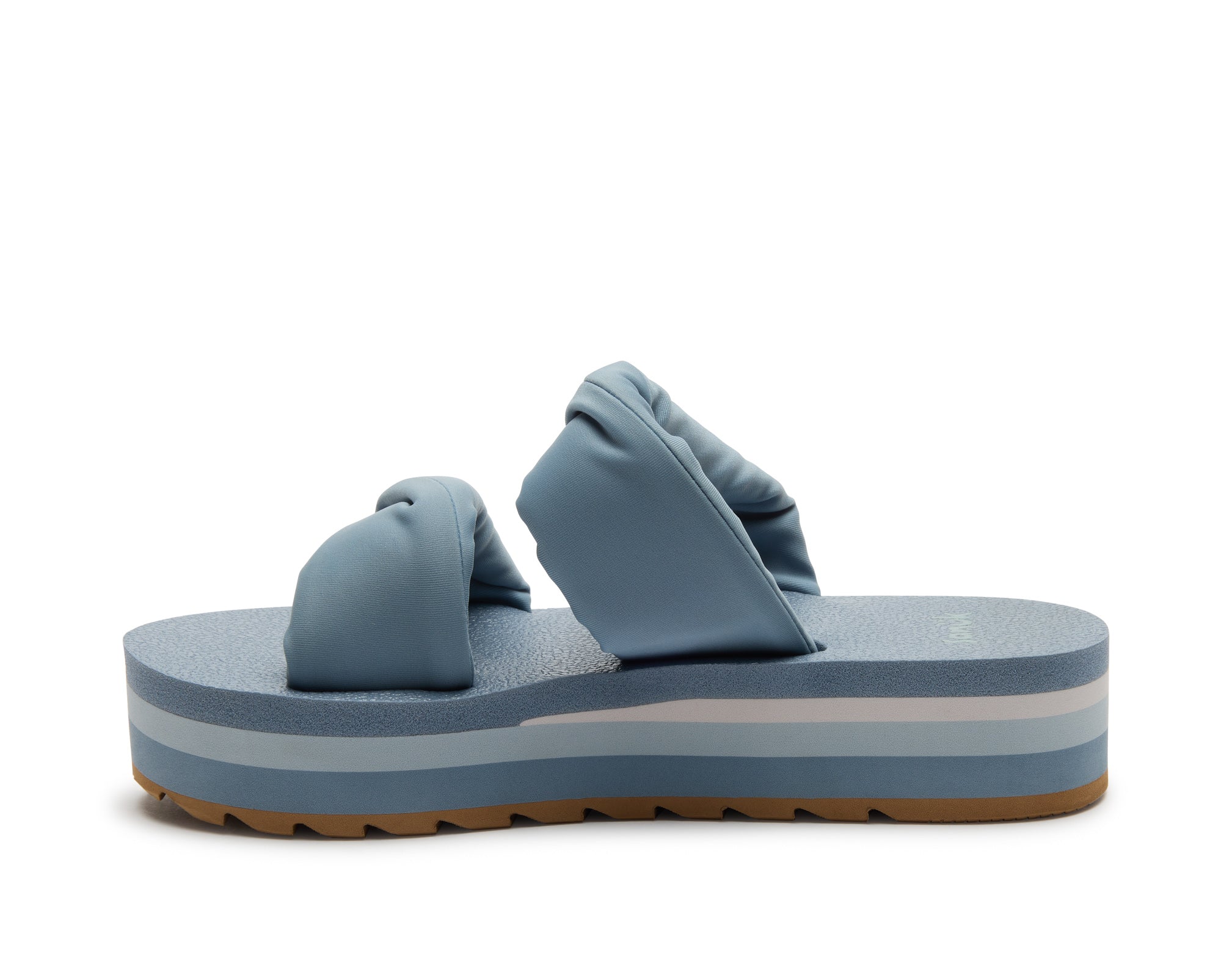 Puffy foam filled polyester jersey straps sit atop our OG comfort footbed on a lifted platform