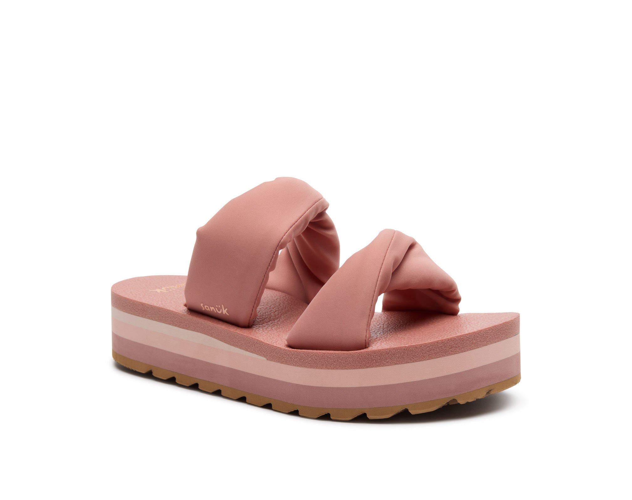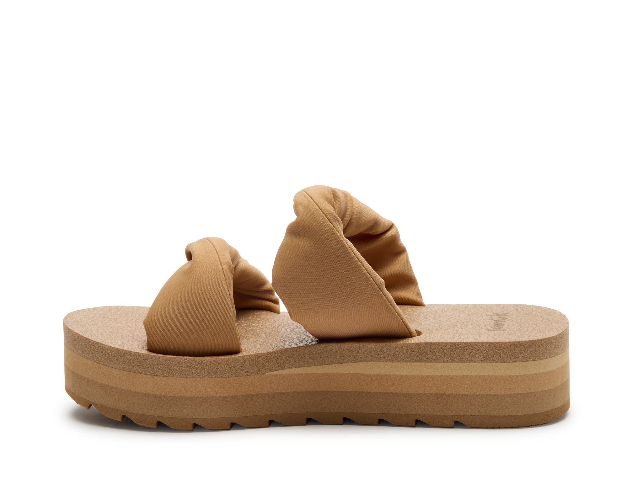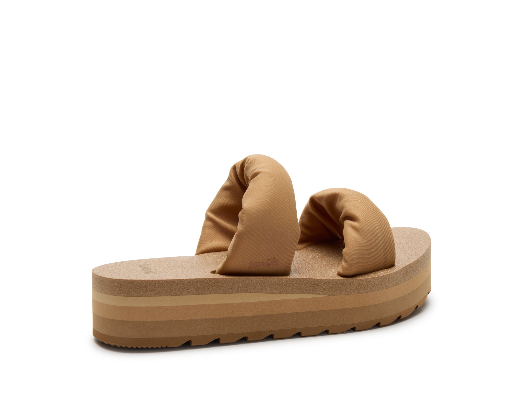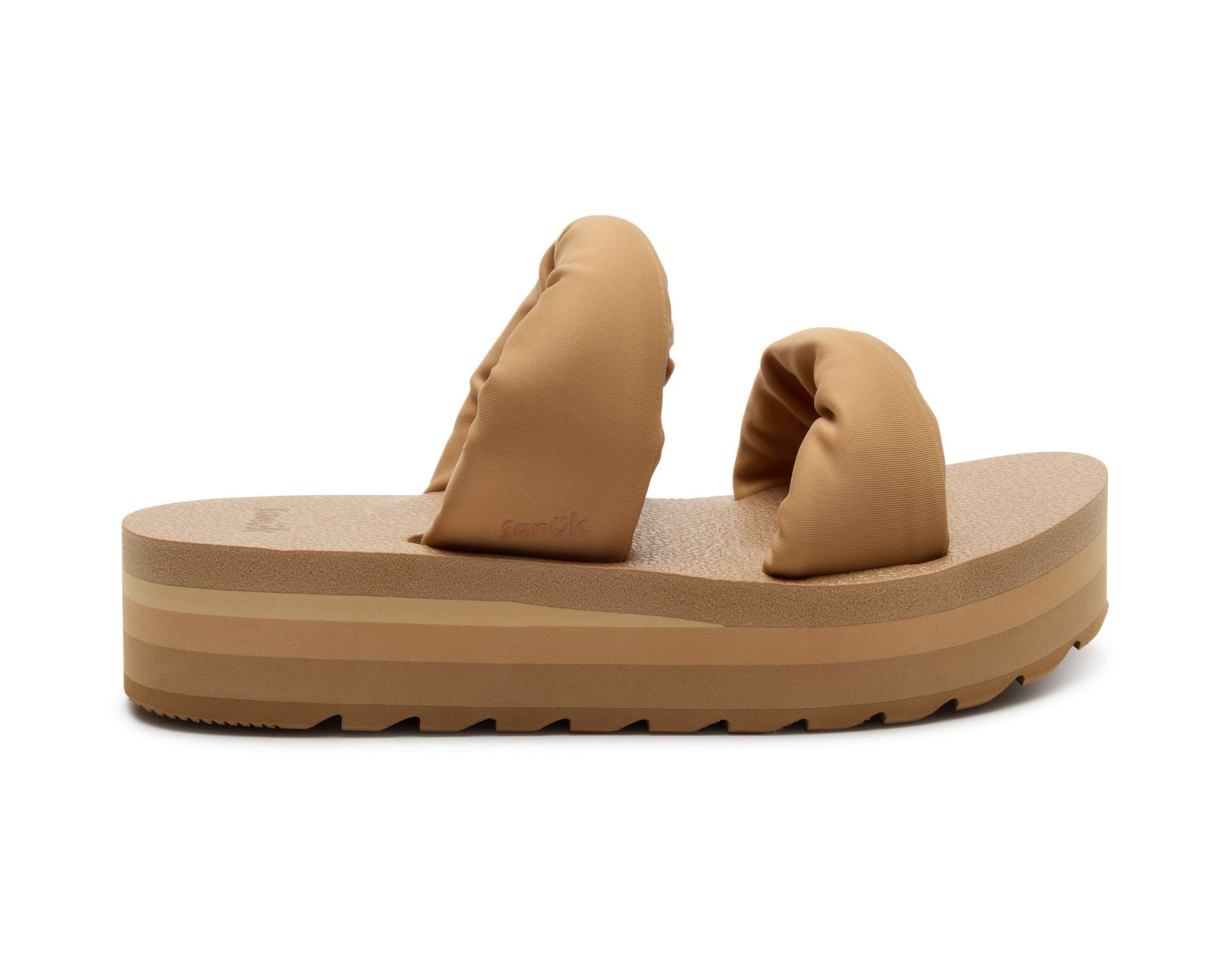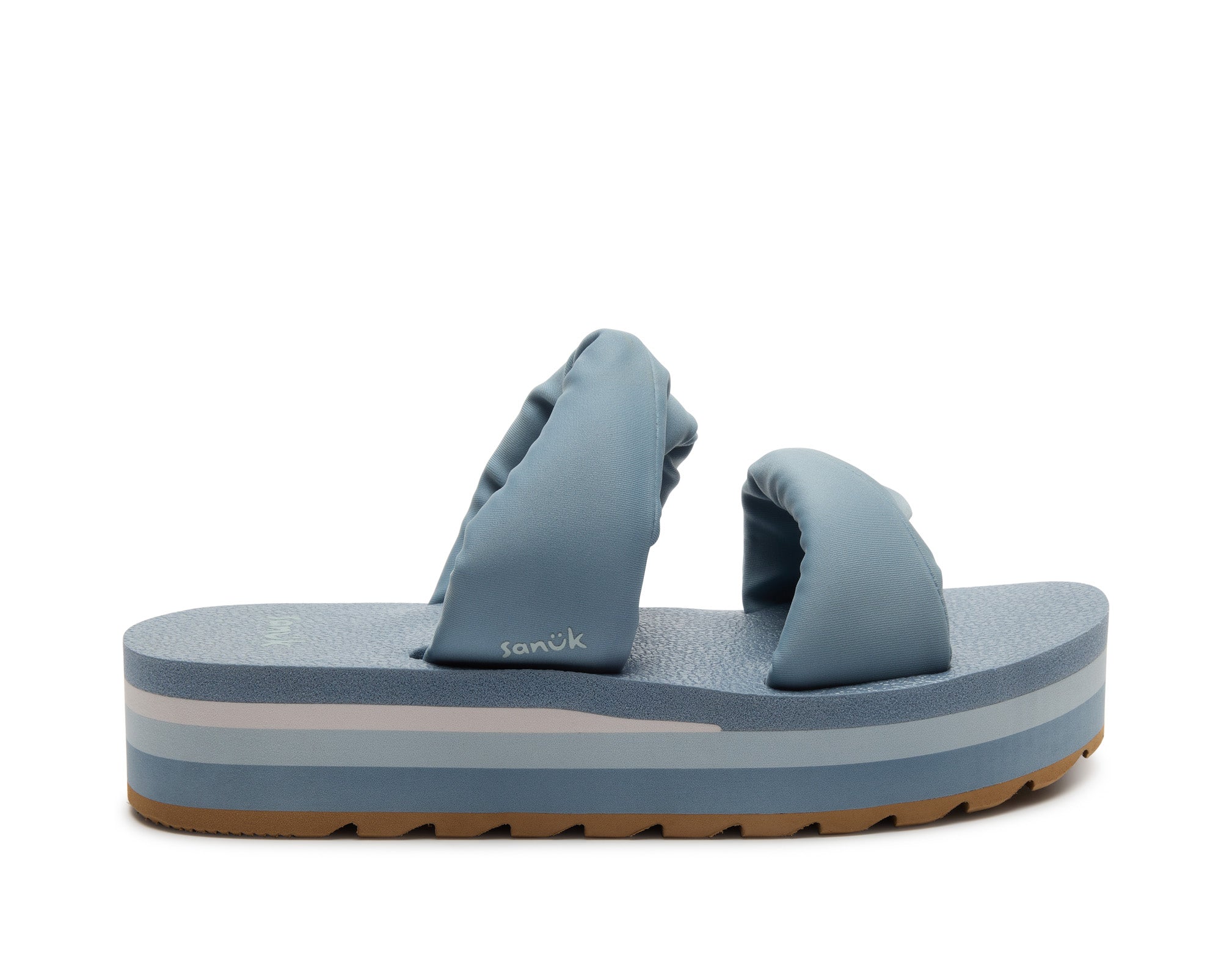 Puffy foam filled polyester jersey straps sit atop our OG comfort footbed on a lifted platform